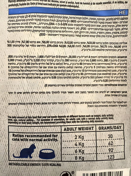 אוכל יבש לחתול היירבול MONGE מונג' 1.5 ק"ג