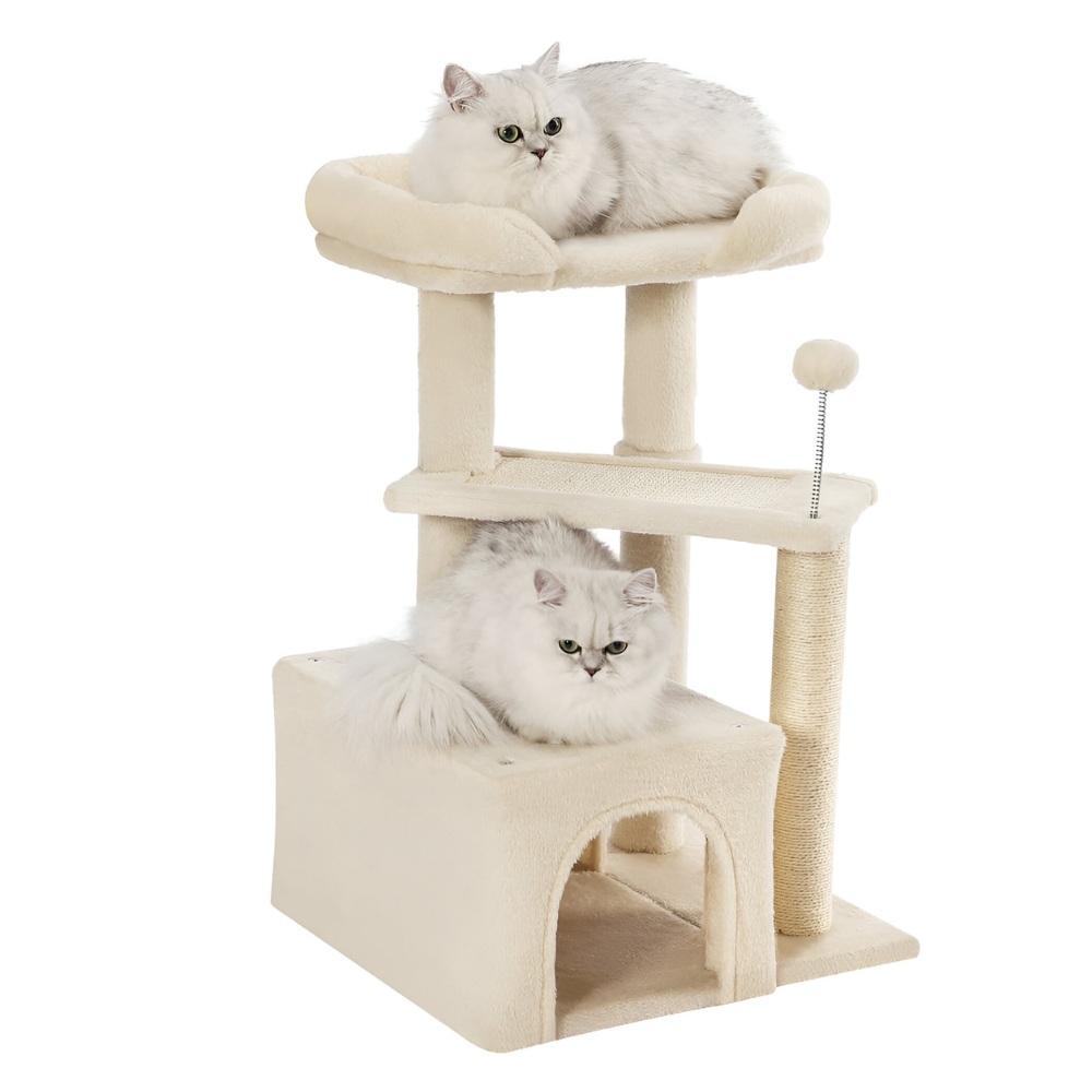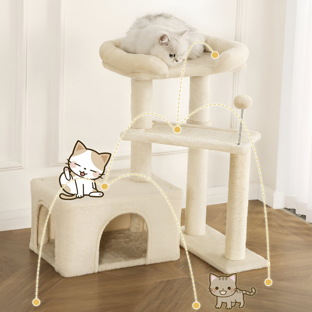 מתקן גירוד לחתול עם בית מסתור, פינת ישיבה, איזור גירוד וערסל תצפית. מתאים ל2-3 חתולים בבית. מתאים לבתים בינוניים בהם חיסכון במקום הוא דבר חשוב.