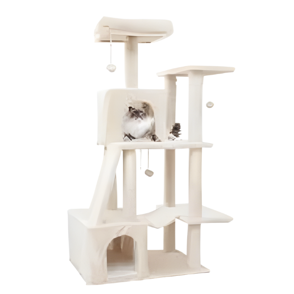 המתקן הזה הוא באמת כמו וילה לחתול! הוא מציע כל מה שהחתול שלך צריך – מקום לגירוד, מקום למנוחה, וגם הרבה מקומות לשחק. עם כמה קומות ומספר אזורים לגירוד, משחק ומנוחה, המתקן הזה מתאים לכל חתול שאוהב לשחק, לטפס ולהרגיש בבית.